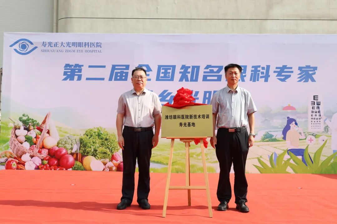 “潍坊眼科医院新技术培训寿光基地” 同期启动,李群成局长与孙先勇教授共同揭牌。该基地将成为提升区域眼科医务人员技术水平的重要平台。